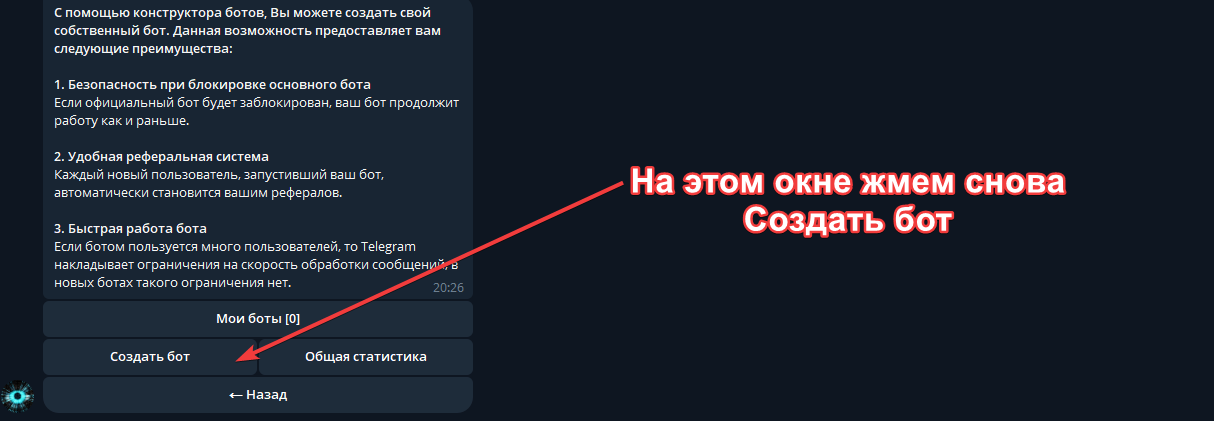 Здесь нам будет предложено перейти в официальный телеграмм бот для создание ботов